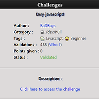 | [W3Challs] [/dev/null] Security + Javascript ≠ 2 (0) | 2017.02.03 |